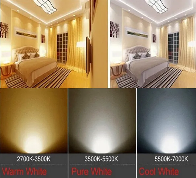 Разница между холодным белым и теплым белым называется цветовой температурой. Это начинается с более желтого цвета, до чистого белого, а затем до более синего с оттенком белого.