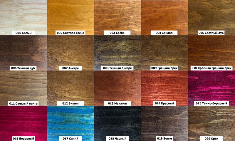 Водоэмульсионный прозрачный морильный лак готов к использованию, выпускается в нескольких цветовых вариантах.